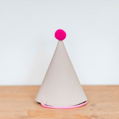 PickledPomPom X Pixi & Jon Leather party hat The best, most beautiful keep-forever-reusable birthday hats! Taupe leather, raspberry pom Stretch...