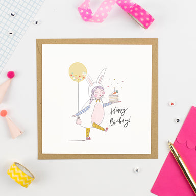 Some-bunny is marching her way to the party! Cutie original illustration Blank for your own message