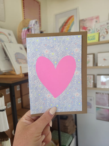 Designed by me in Kildare, printed in Dublin on 300gsm recycled board This one is beautiful framed, featuring a neon candy pink heart on a ditsy fl...