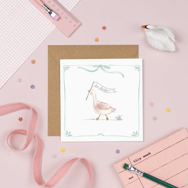 Silly goose welcomes a new little baby, along with his little snail pal! Gender neutral Original illustration on beautifully textured card, blank...