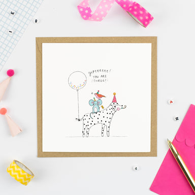 A gorgeous little keepsake card for that milestone third birthday Original illustration on beautifully textured card Blank for your own birthday wi...