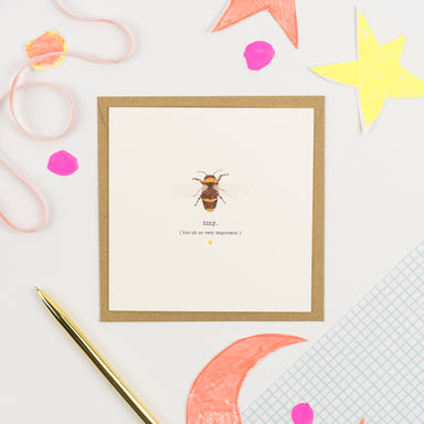 Tiny , but oh so very important' - this is true for bees and for babies! Original illustration on beautifully textured card, blank for your own mes...