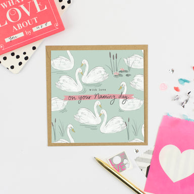 with love on your naming day Blank for your own message, original illustration printed on beautifully textured card Kraft envelope provided Designe...
