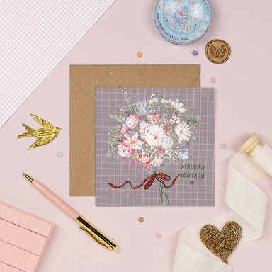 A floral beauty to say happy birthday as Gaeilge Translation on reverse, blank for your own good wishes Kraft envelope provided