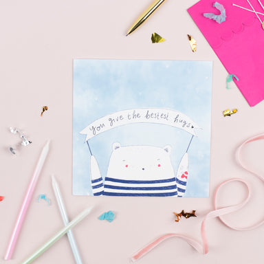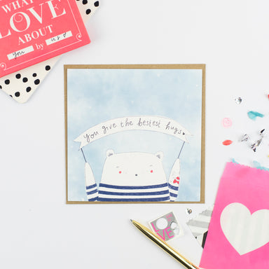 This little inked up bear thinks you’ve the best hugs in the world, Blank inside for your own message An original illustration printed on beautiful...