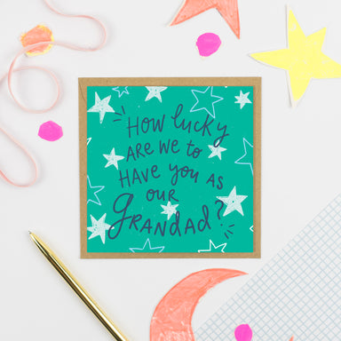How lucky are we to have you as a Grandad? Blank inside for your own message Original illustration on beautifully textured card Kraft envelope prov...