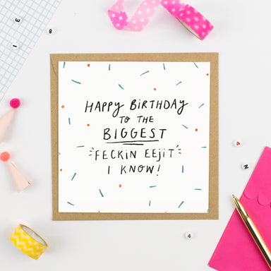 Happy birthday - you're an eejit, but you're my favourite eejit! Original illustration, printed on beautifully textured card blank for your own mes...