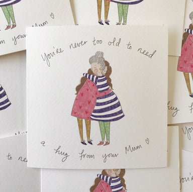 Original digital illustration printed on beautiful quality textured card, blank inside for your own message “You’re never too old to need a hug fr...