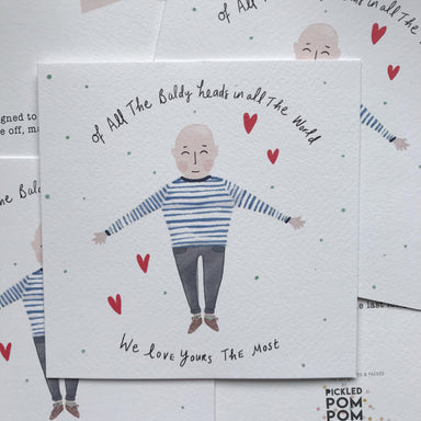 Of all the baldy heads in all the world, we love yours the most! Blank for your own message Digital print on 250gsm textured card Kraft envelope pr...