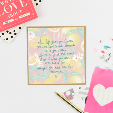 Just a reminder.. maybe you don't like lemonade, or gin...you never asked for the bleedin' lemons!! Original digital illustration printed on beauti...