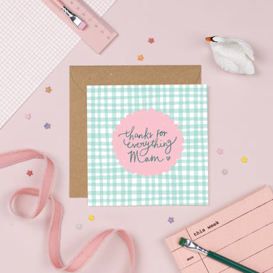 Thanks for everything Mam x Original illustration printed on beautifully textured card Blank for your own message, kraft envelope provided Perfect ...