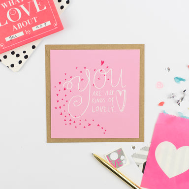 My favourite colour combo - pink and red! Tell them they are all kinds of lovely - a beautiful quality textured greetings card, designed to be fram...
