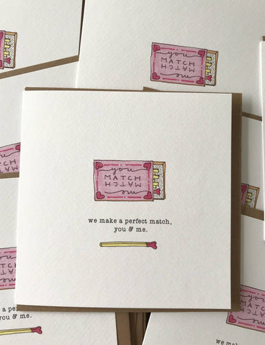 We make a perfect match you and me! Digital print of an original illustration on beautifully textured 250gsm card. Blank for your own message De...