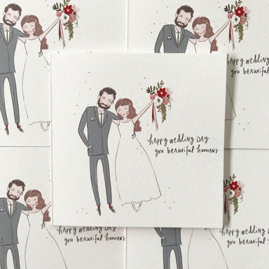 Happy Wedding Day you beautiful humans Original illustration on textured card, designed to be framed after gifting Blank inside for your own messag...