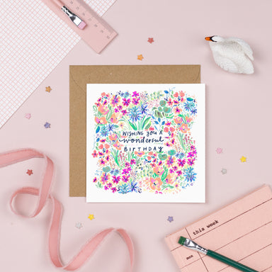 A beautifully illustrated birthday card, blank for your own message Kraft envelope provided