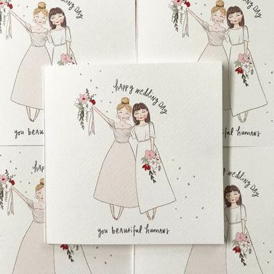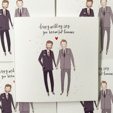 Happy Wedding Day you beautiful humans Original illustration on textured card, designed to be framed after gifting Blank inside for your own messag...