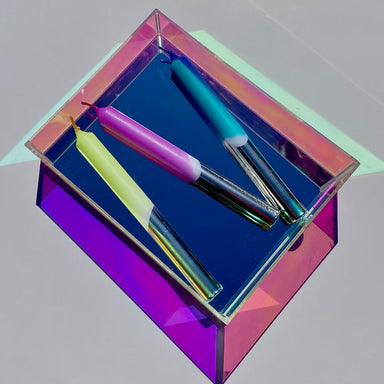 Part of our curated range - neon northern lights inspired candles dipped in a mercury-like mirror finish. Due to the manual work, each candle is a...