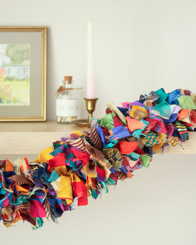 An eco-conscious alternative to metallic tinsel, this beautifully made recycled sari garland can be brought out year after year for multiple occa...