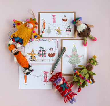 One of each of our felt pom pom player decorations plus 2 packs of the matching cards ( 10 cards total ) Packaged with love and free shipping, savi...