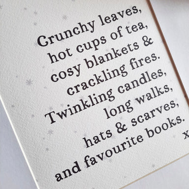 All the things we love about the spooky season! Alternatively, choose your own custom words A4 Unframed print, printed on beautifully textured card...