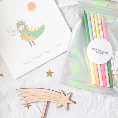 Set of three lovingly hand-coloured taper candles in a neon look. The colours stay the same, the patterns vary with each candle and make them spec...