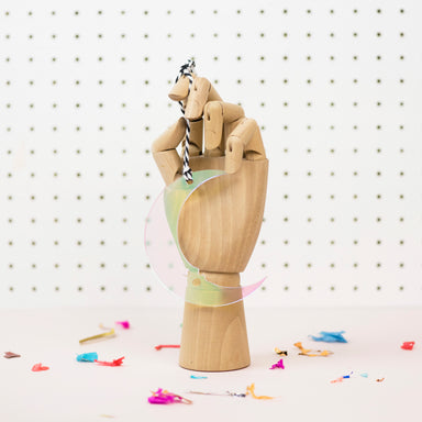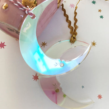 This magical iridescent moon shimmers under the twinkly lights - photos don't do it justice! Designed by Laura - laser cut and painted in Donegal...