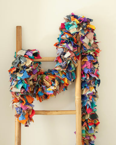 An eco-conscious alternative to metallic tinsel, this beautifully made recycled sari garland can be brought out year after year for multiple occa...