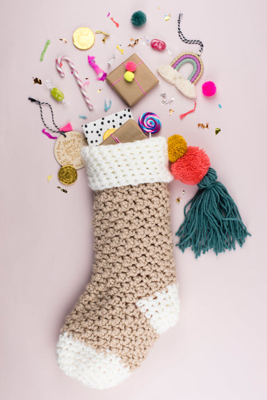 A lovingly made crochet stocking, made by hand in tiny batches in Kildare by the lovely Lisa. a big juicy stocking big enough to be filled with goo...