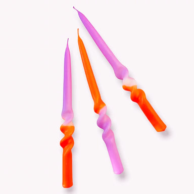 View full detailsI'm a bit obsessed with these curly guys! Set of three lovingly hand-dyed, twisted stick candles in neon look. The colours remain the same, the pat...